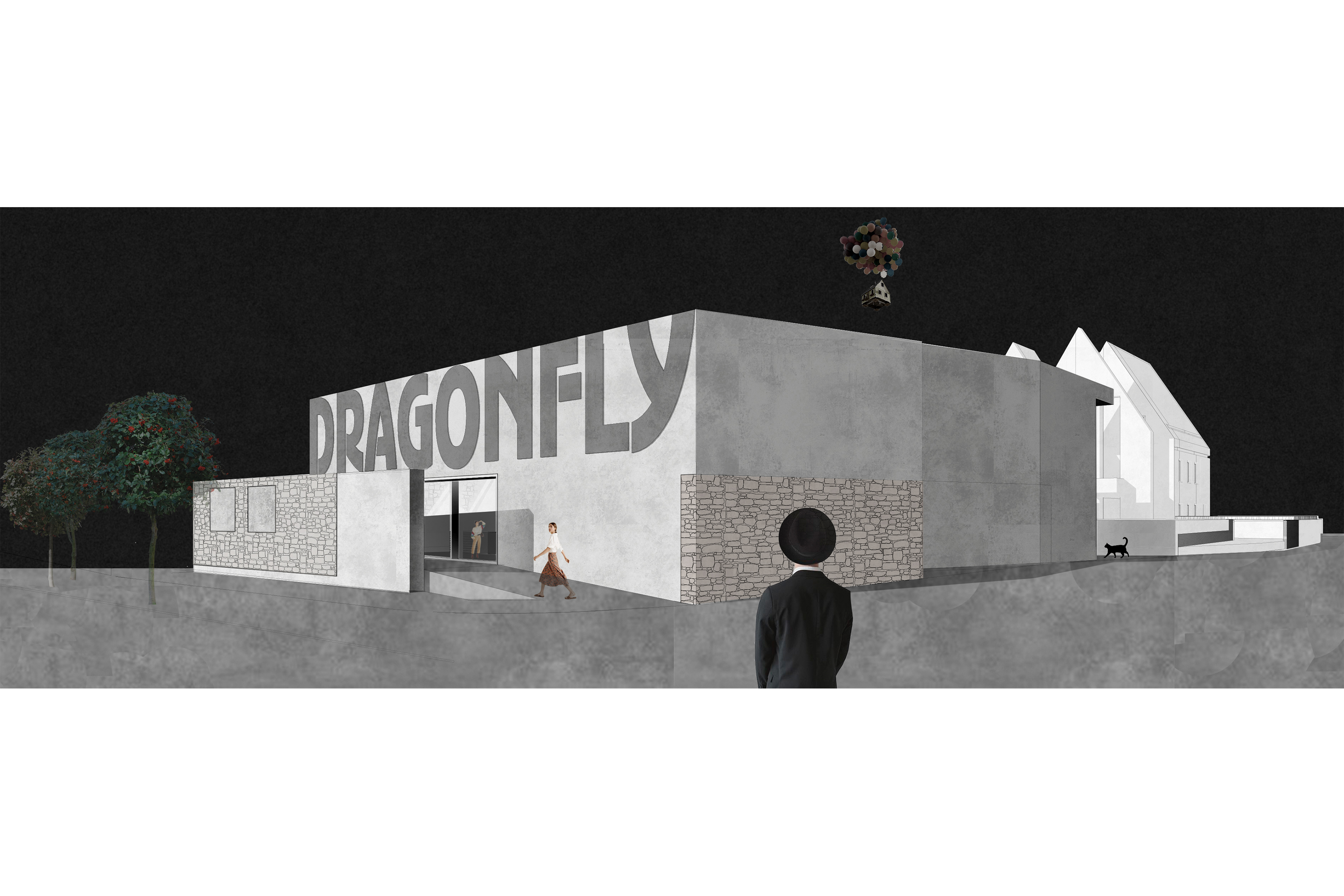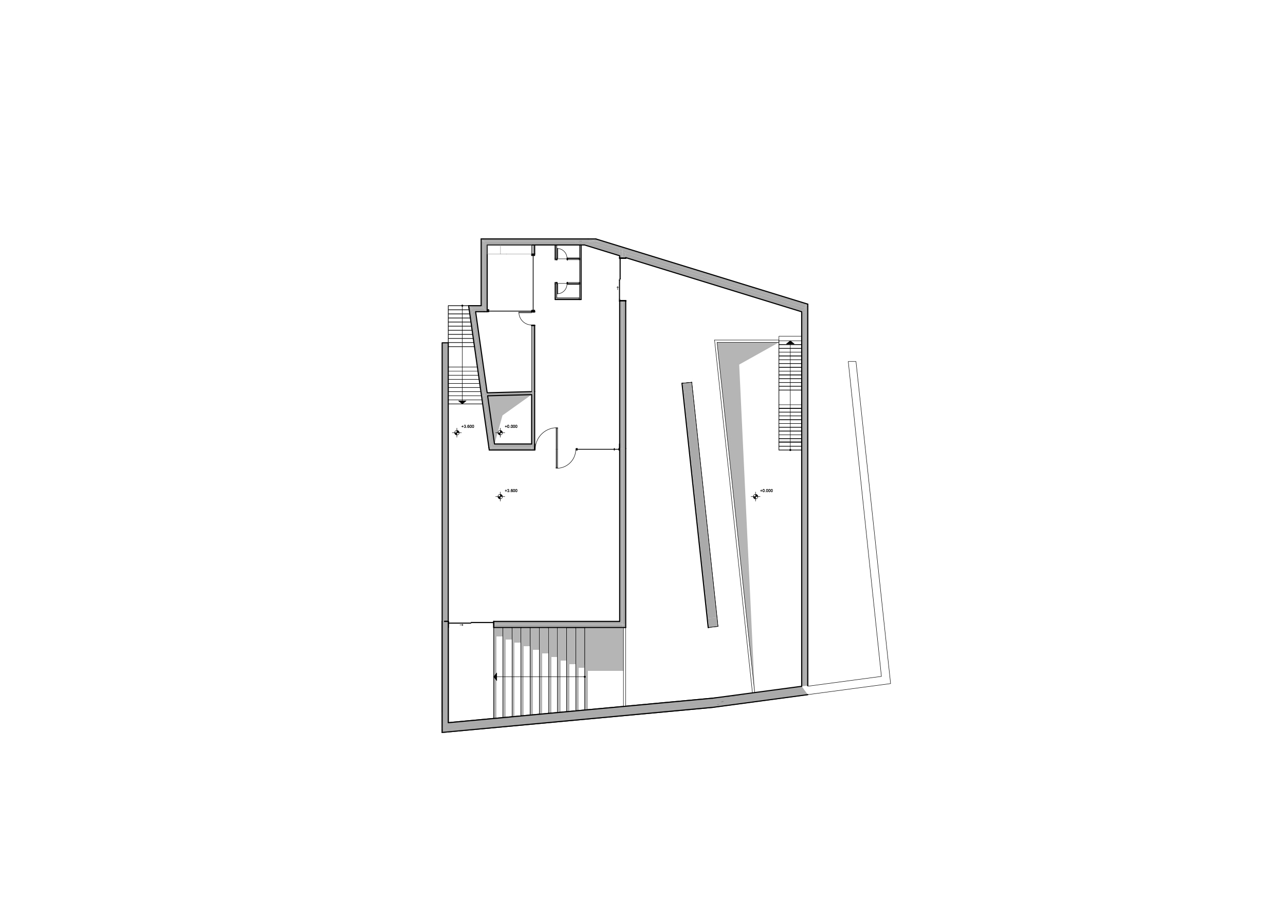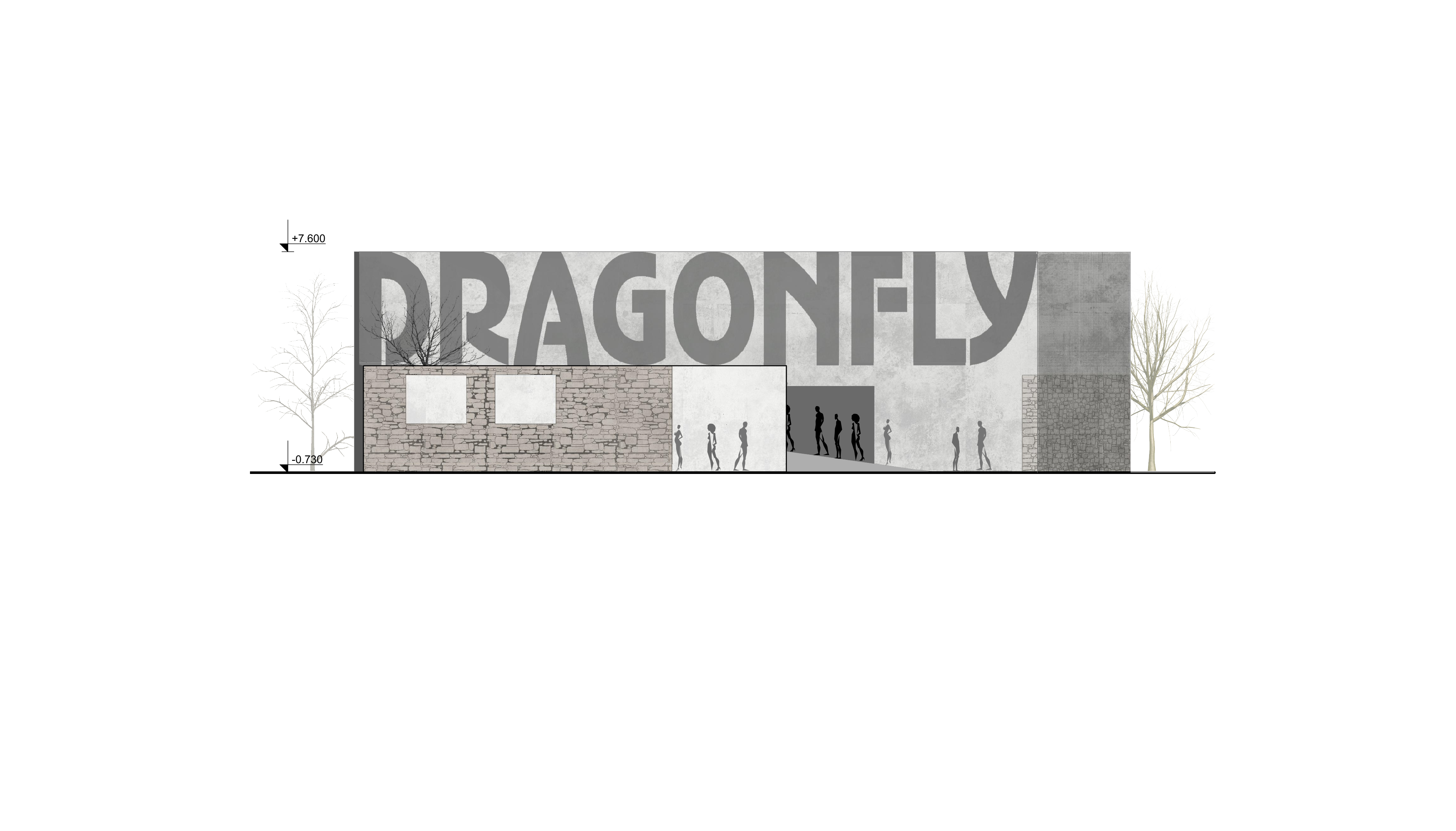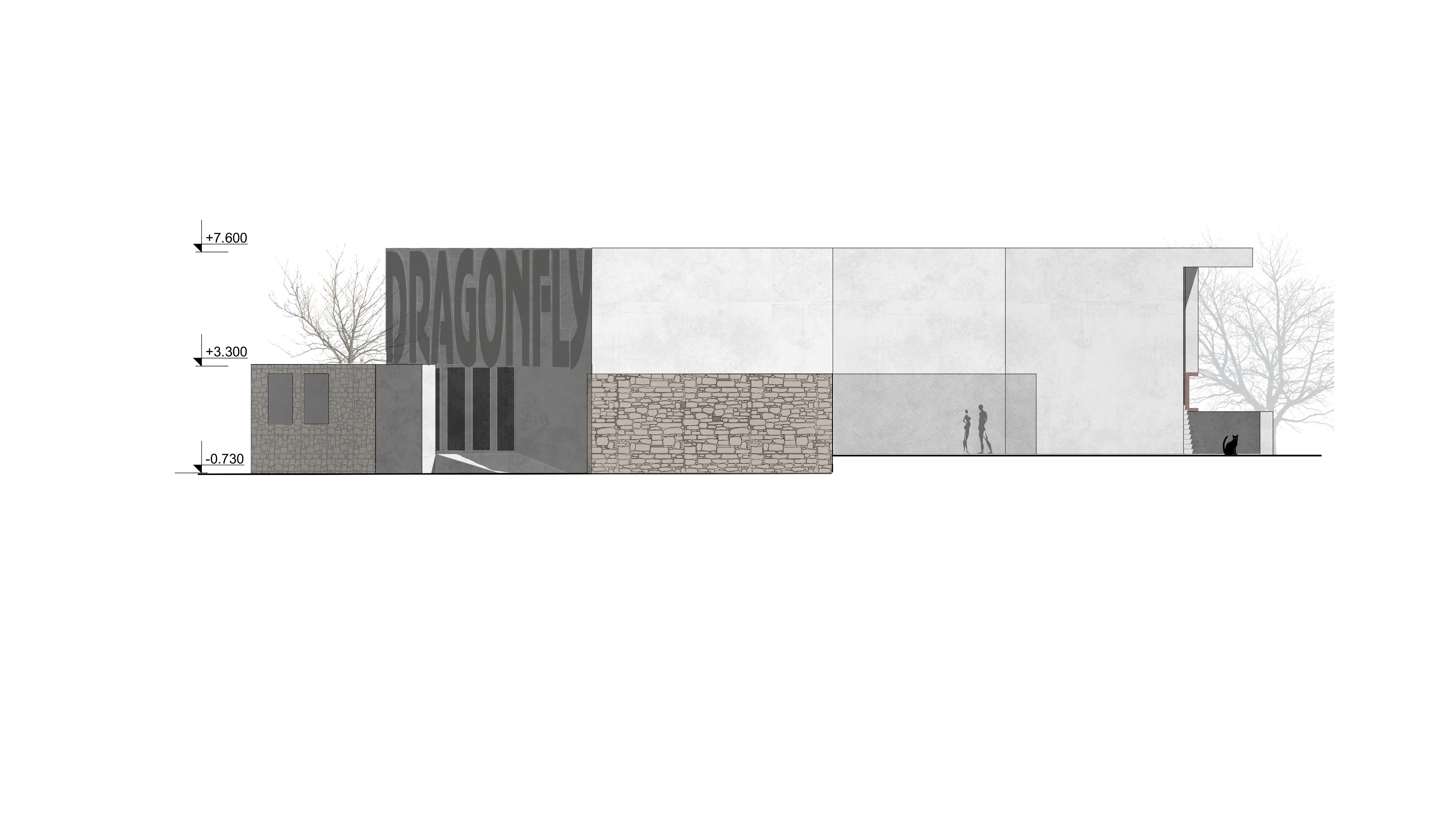 As the main façade opens onto the highway, access to the museum is organized in the middle of the space, where you can relax and wait before watching a show. The light-glazed hall opens into the yard.