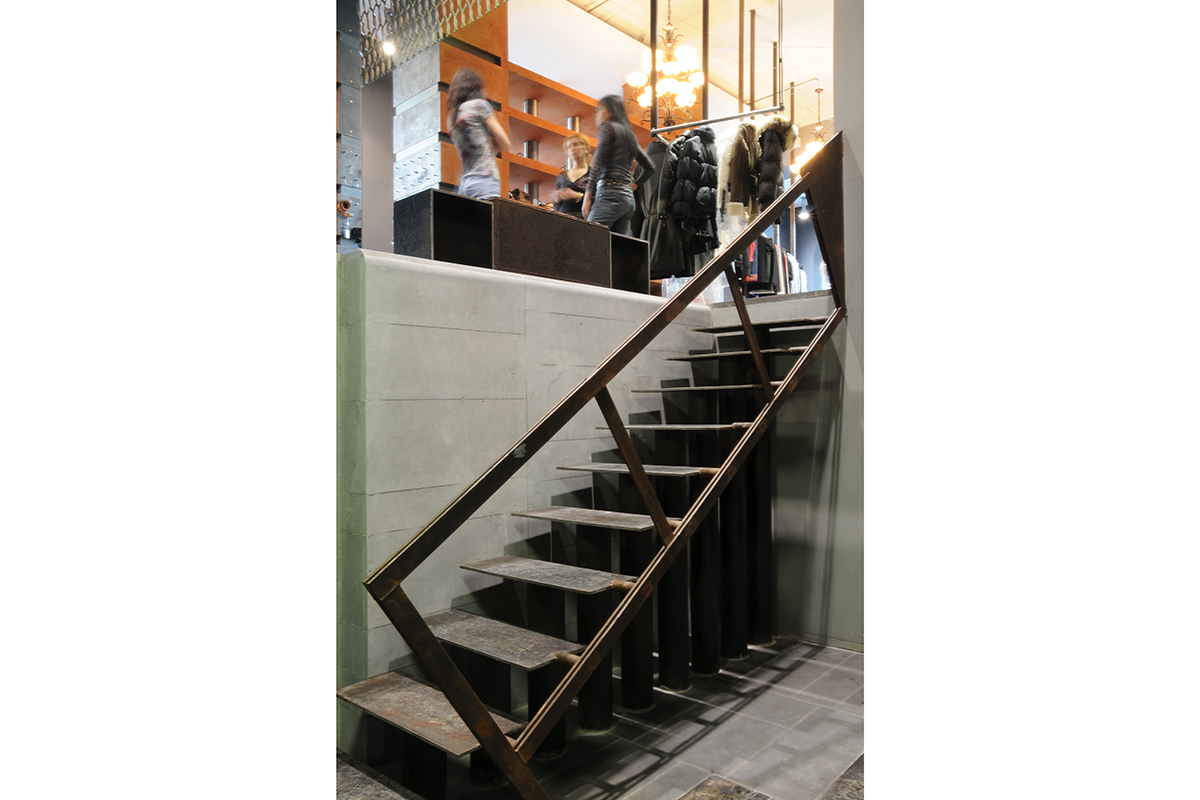 DNK խանութը գտնվում է Ամիրյան փողոցում՝ զբաղեցնելով շենքի առաջին հարկը, մ2: Խանութի երկու սրահներից առաջինը առանձնանում է աքսեսուարներ ցուցադրելու համար տուֆից պատրաստած կահույքով, իսկ երկրորդը՝ գտնվելով նիշով ավելի բարձր, հարդարված է կոպիտ բետոնով և մետաղյա սալերով: Երկու սրահներում էլ առկա են բարձր, իրենց առանցքի շուրջը պտտվող հայելիներ, որոնք թույլ են տալիս հեշտությամբ փոփոխել ինտերիերը ՝ արտացոլքերի միջոցով: Խանութի և մայթի հարթությունները նույն մակարդակի վրա են, իսկ անցորդի մոտ ստեղծում է խանութին անմիջապես առնչվելու տպավորություն: