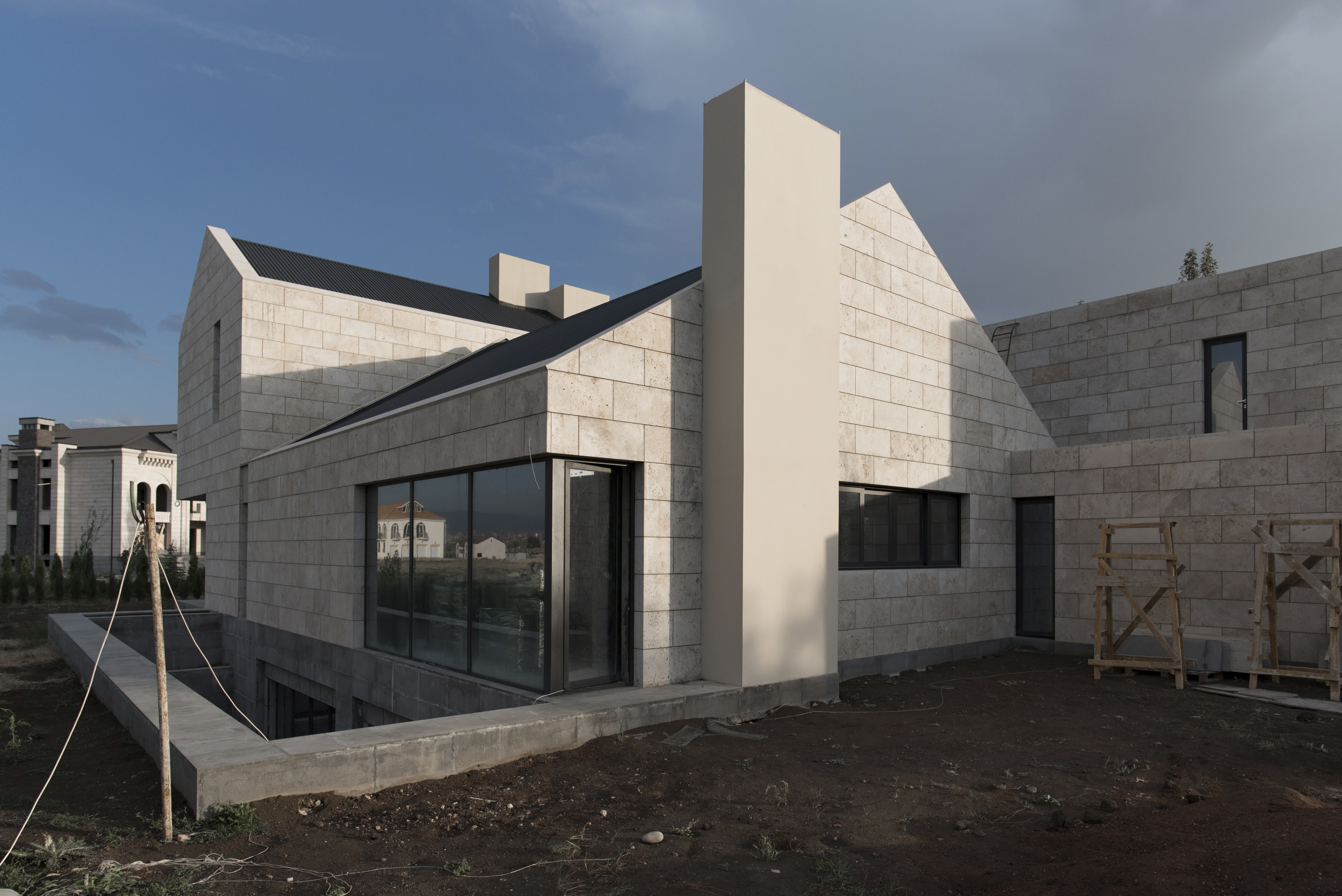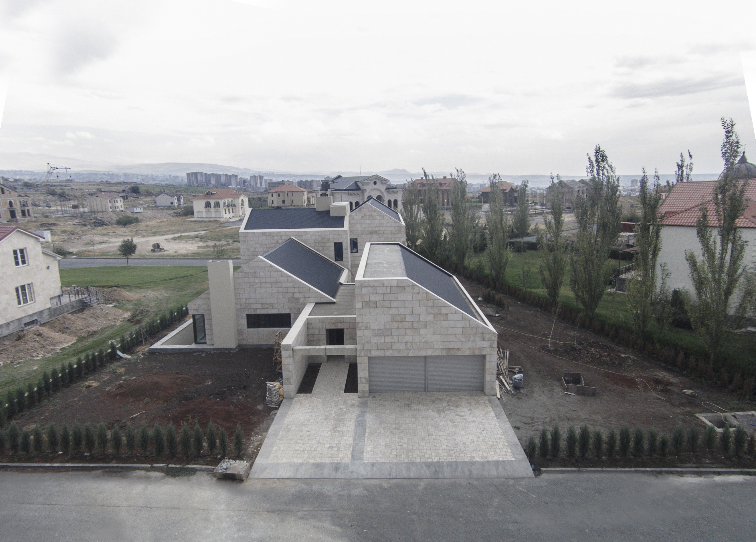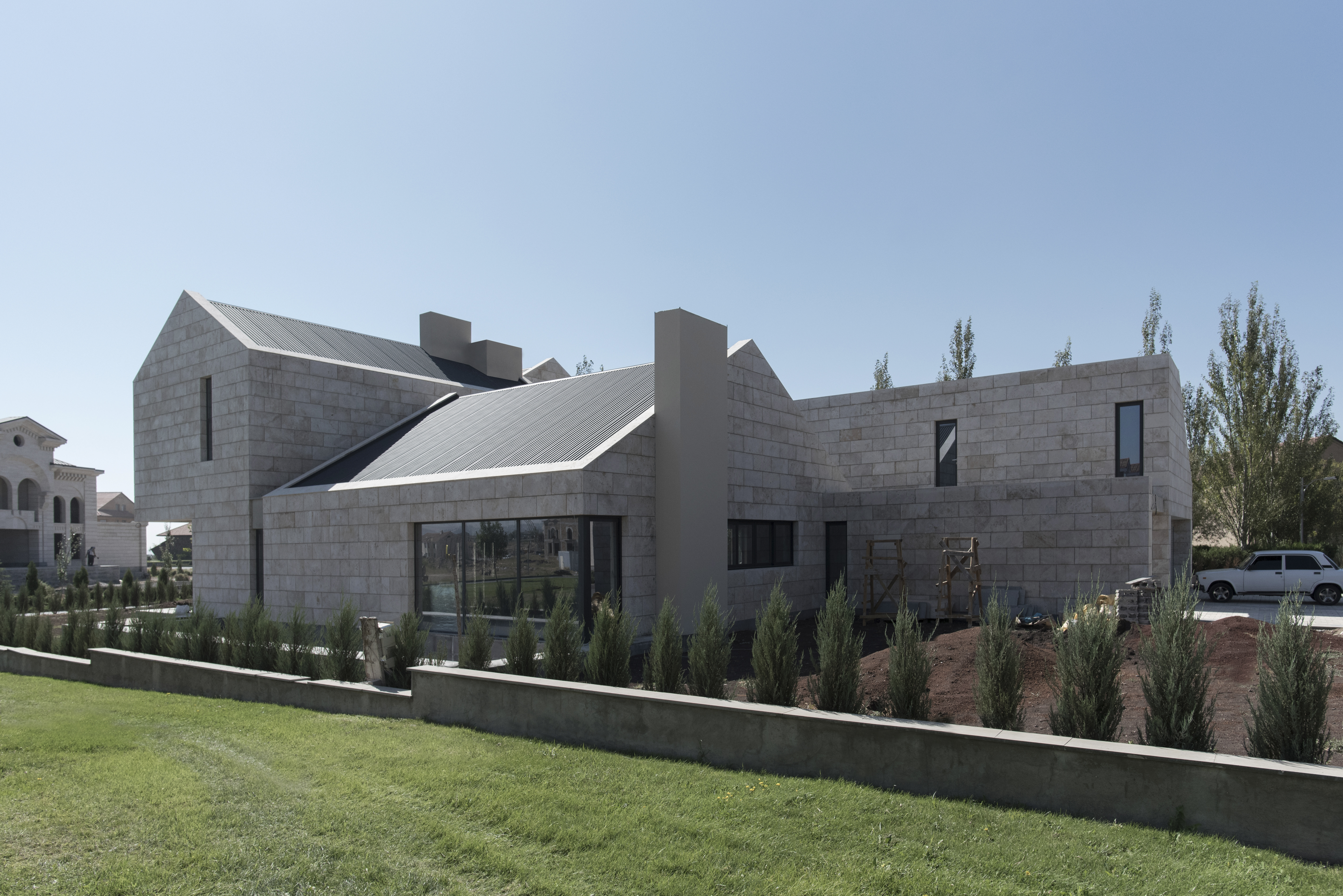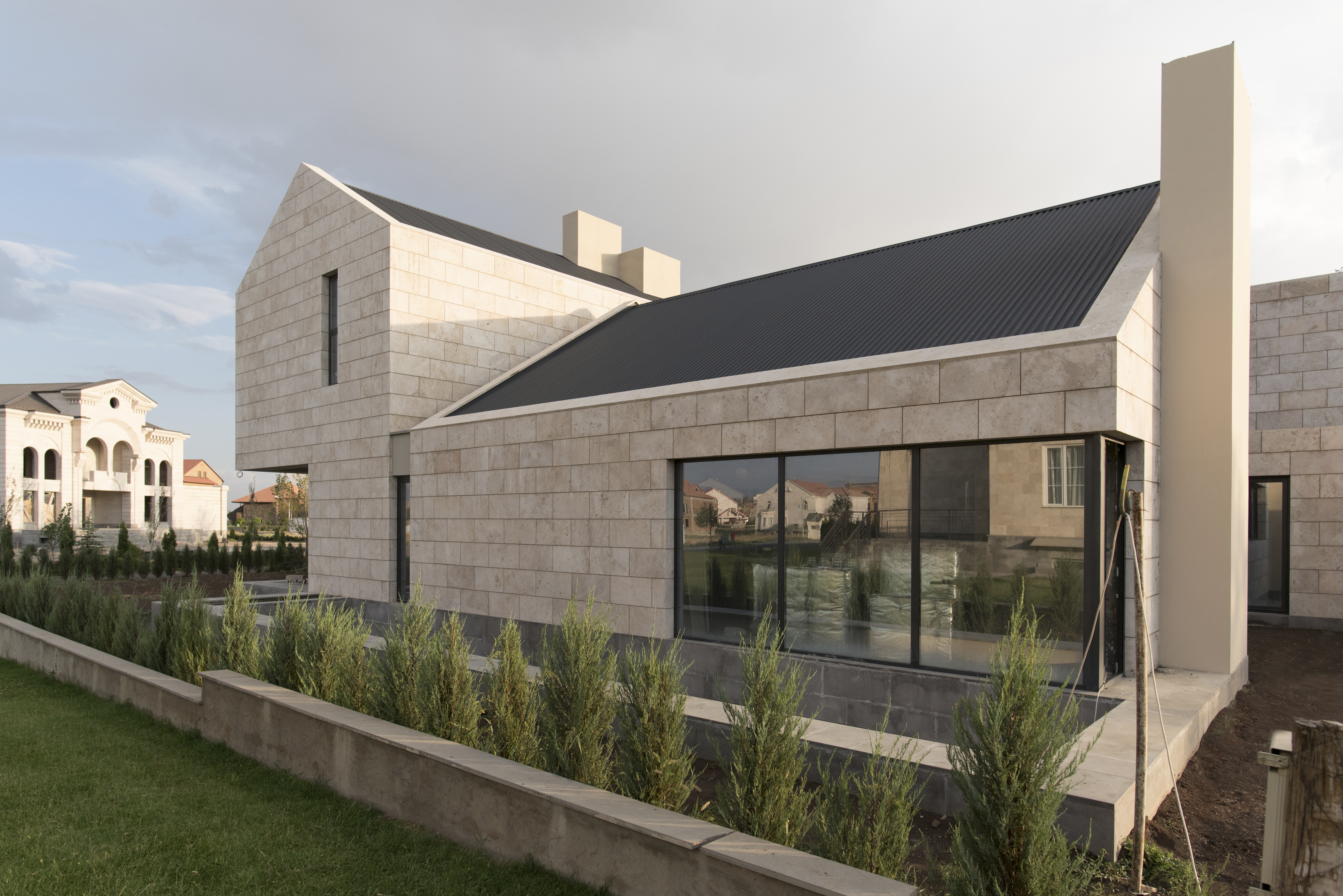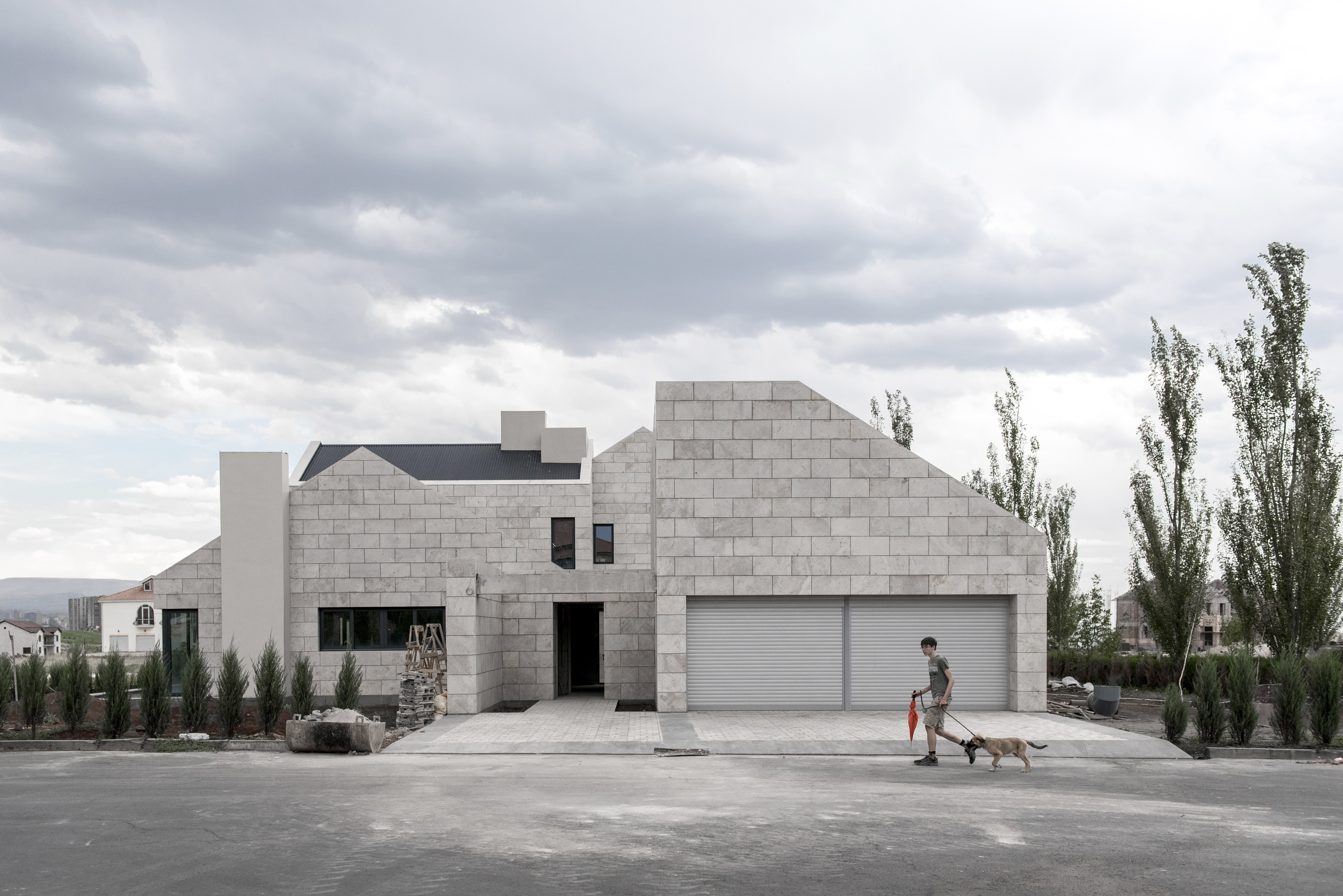 Ուզունյան ընտանիքի առանձնատունը գտնվում է Վահագնի թաղամասում, որն ունի կառուցապատման իր յուրահատկությունը՝ ի տարբերություն մյուս նմանատիպ թաղամասերի, հողակտորներն այստեղ պարսպապատ չեն: Հաշվի առնելով այս հանգամանքը, ինչպես նաև ազգային բնավորությունը, մեր նախագիծն առաջարկել է հետևյալ լուծումը: Մեկ առանցքի վրա տարբեր ճարտարապետական ծավալներով ստեղծել ենք կոմպոզիցիա, որը դուրս չի մնում միջավայրի կոնտեքստից, բայց և թույլ է տալիս ունենալ բակ՝ առանձնանալու համար: Առաջին հատվածը նեռարում է տեխնիկական սենյակները, ավտոտնակն ու նախասրահը: Գոյացած բակի և լողավազանի վրա ամենամեծ բացվածքն ունեցող միջին ծավալի մեջ են հյուրասենյակը, ճաշասենյակն ու խոհանոցը: Երրորդ երկհարկանի հատվածում են գտնվում ննջարանները: Առանձնատունը կառուցված է տեղական սպիտակ տրավերտինից: