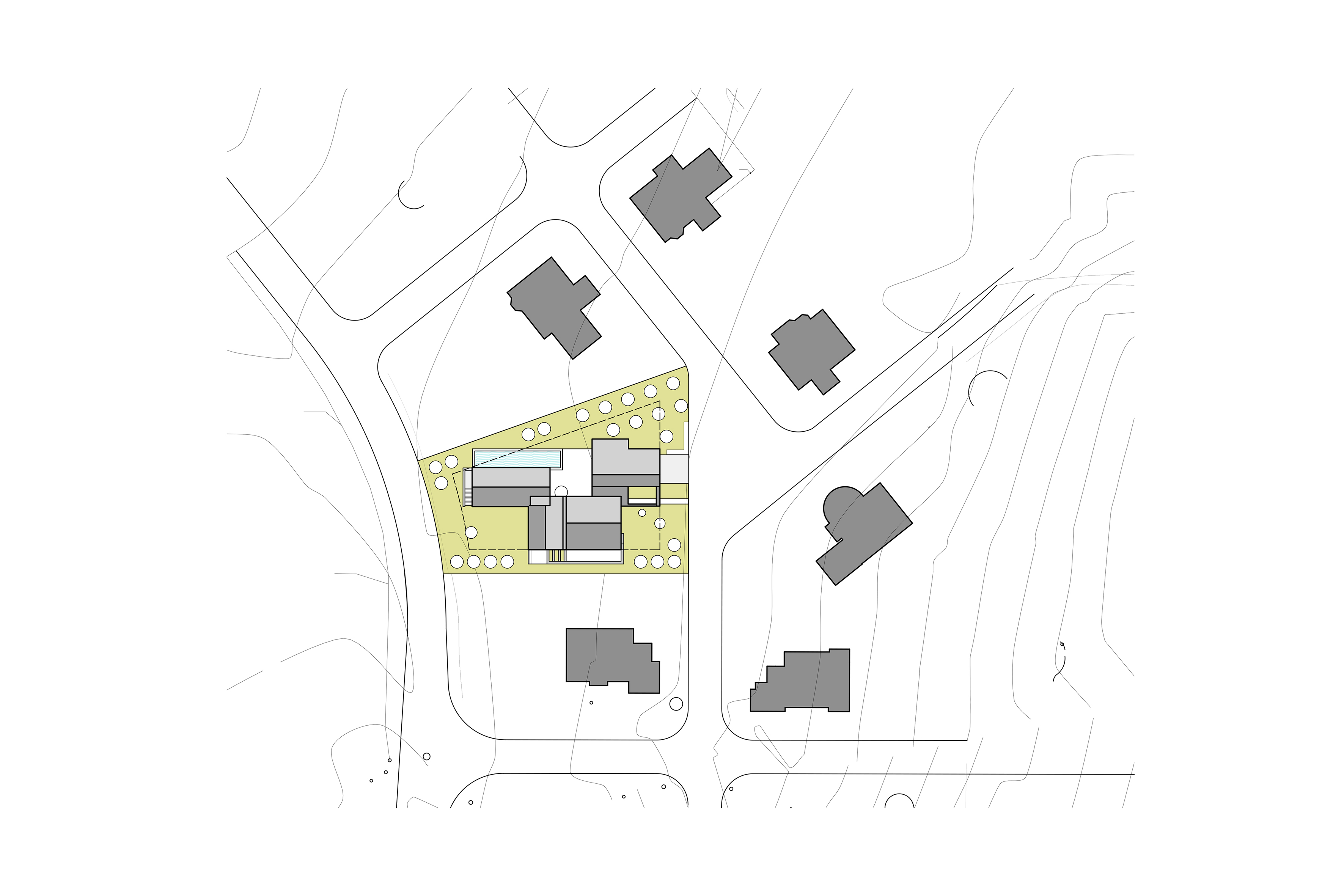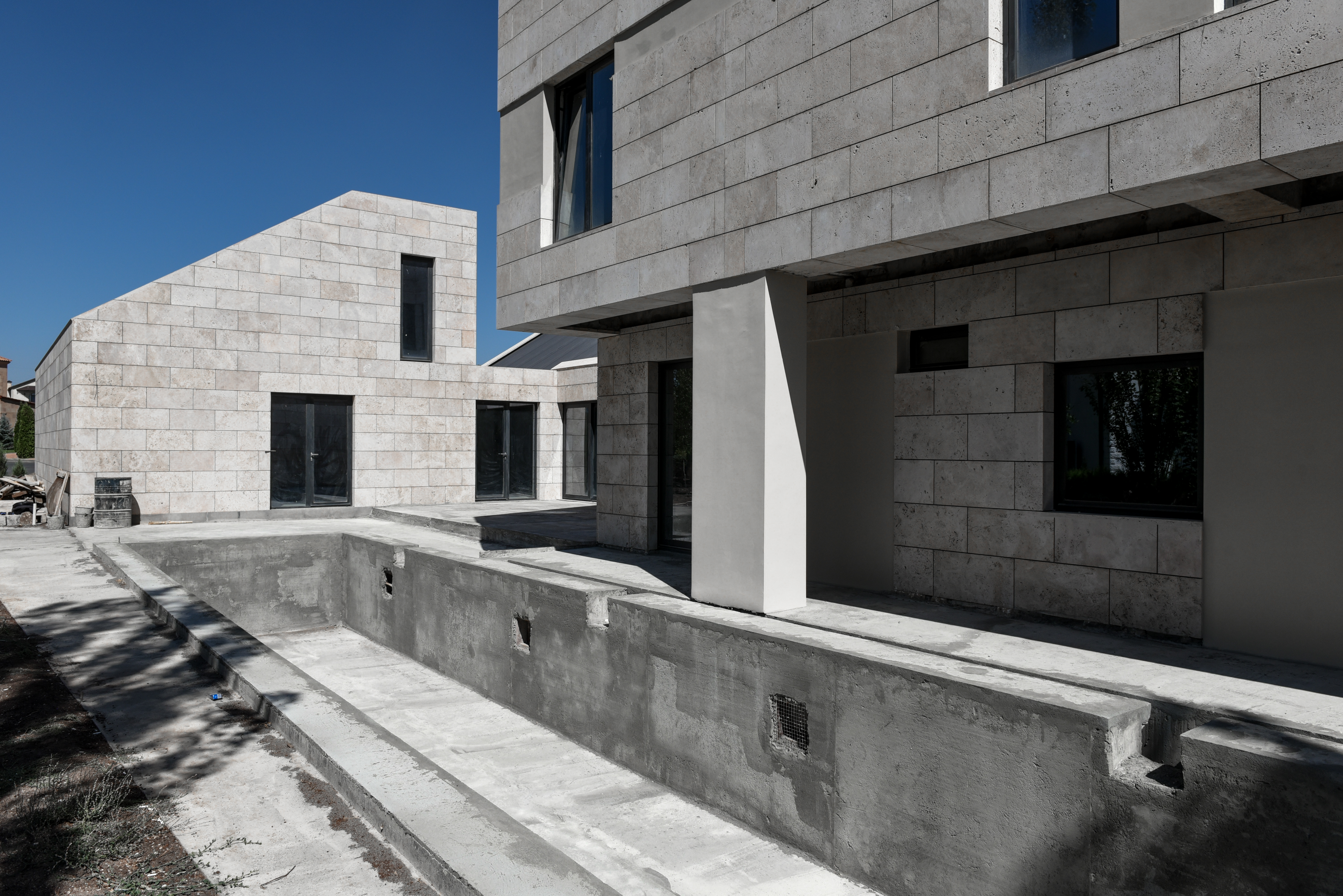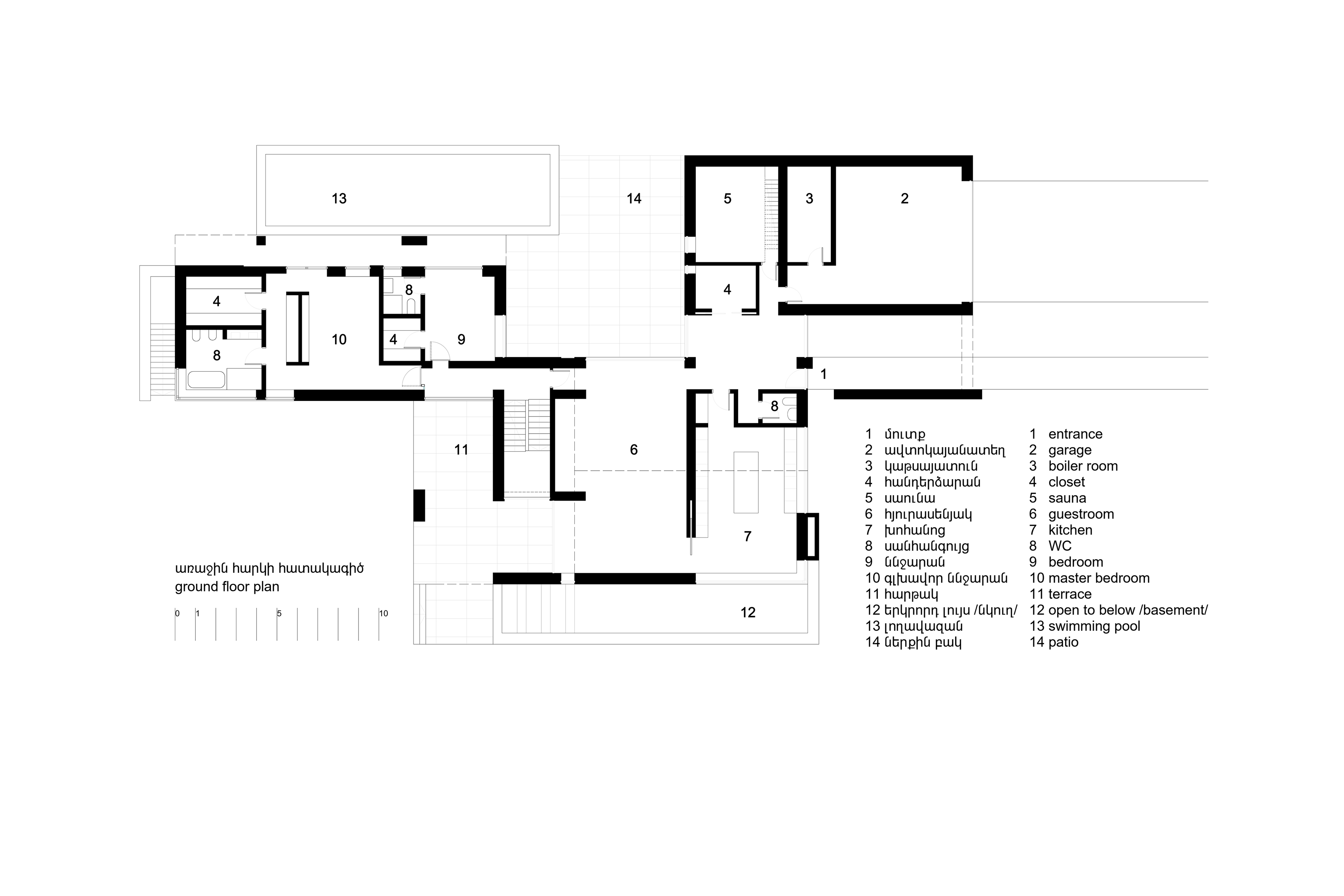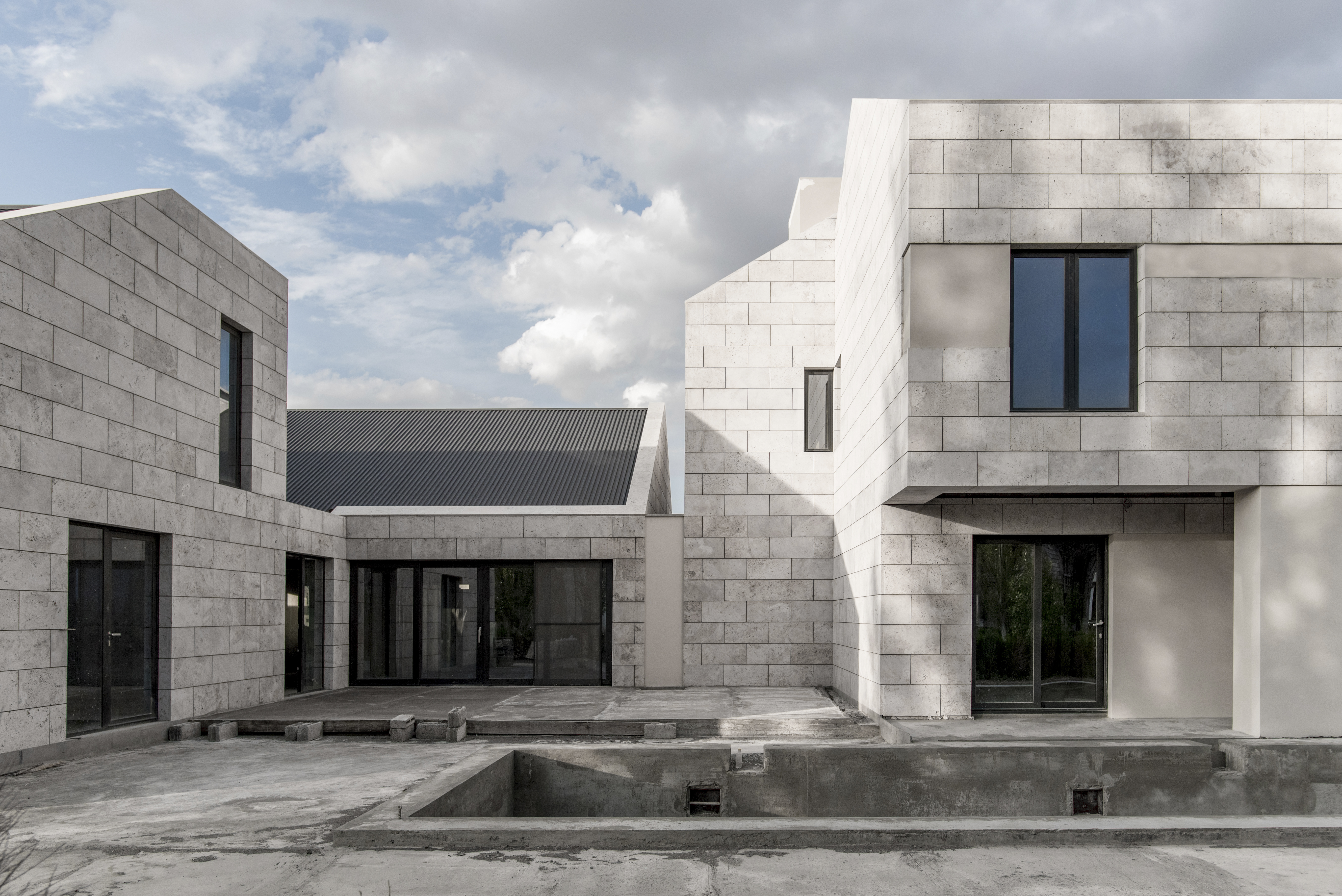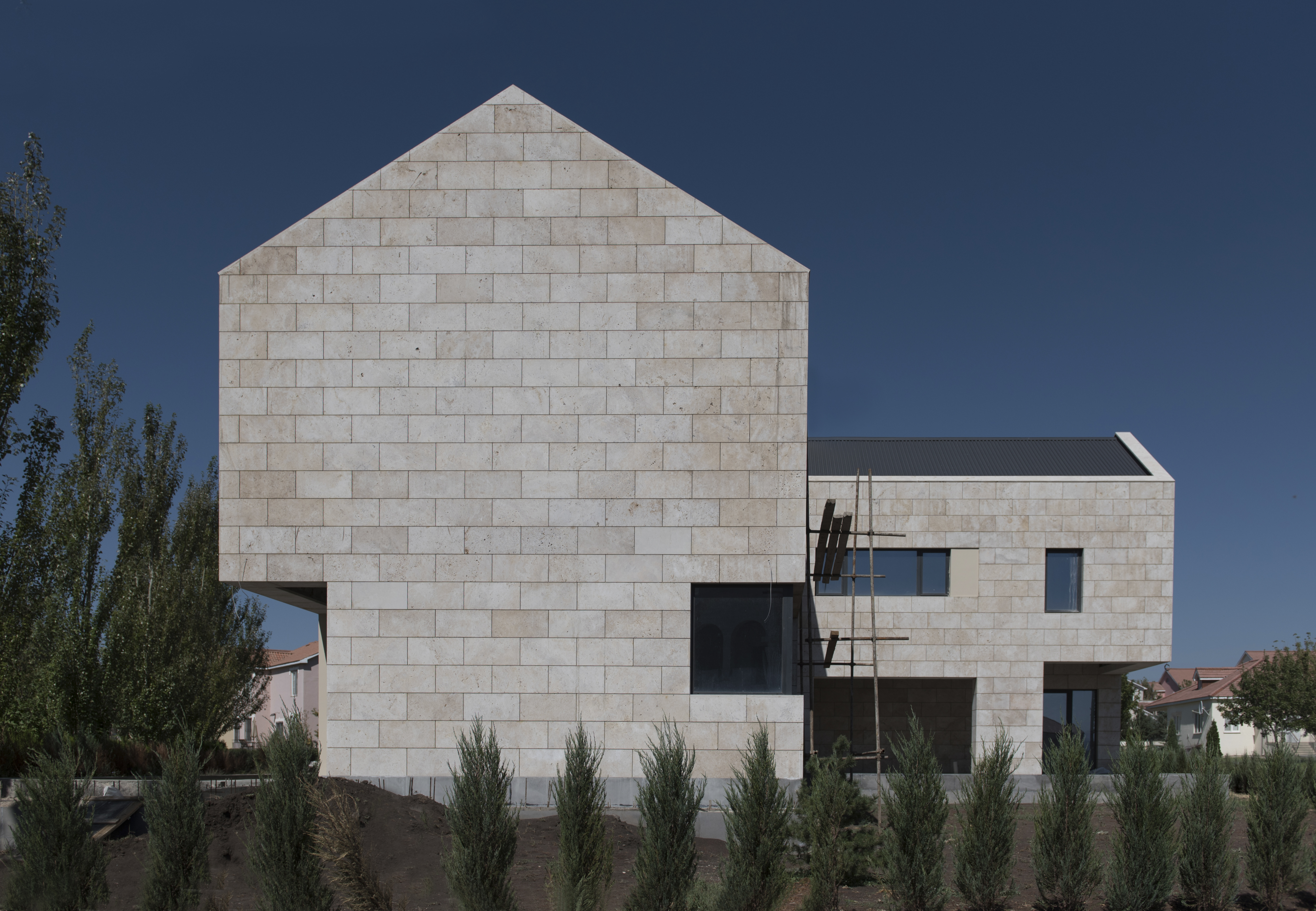 Ուզունյան ընտանիքի առանձնատունը գտնվում է Վահագնի թաղամասում, որն ունի կառուցապատման իր յուրահատկությունը՝ ի տարբերություն մյուս նմանատիպ թաղամասերի, հողակտորներն այստեղ պարսպապատ չեն: Հաշվի առնելով այս հանգամանքը, ինչպես նաև ազգային բնավորությունը, մեր նախագիծն առաջարկել է հետևյալ լուծումը: Մեկ առանցքի վրա տարբեր ճարտարապետական ծավալներով ստեղծել ենք կոմպոզիցիա, որը դուրս չի մնում միջավայրի կոնտեքստից, բայց և թույլ է տալիս ունենալ բակ՝ առանձնանալու համար: Առաջին հատվածը նեռարում է տեխնիկական սենյակները, ավտոտնակն ու նախասրահը: Գոյացած բակի և լողավազանի վրա ամենամեծ բացվածքն ունեցող միջին ծավալի մեջ են հյուրասենյակը, ճաշասենյակն ու խոհանոցը: Երրորդ երկհարկանի հատվածում են գտնվում ննջարանները: Առանձնատունը կառուցված է տեղական սպիտակ տրավերտինից: