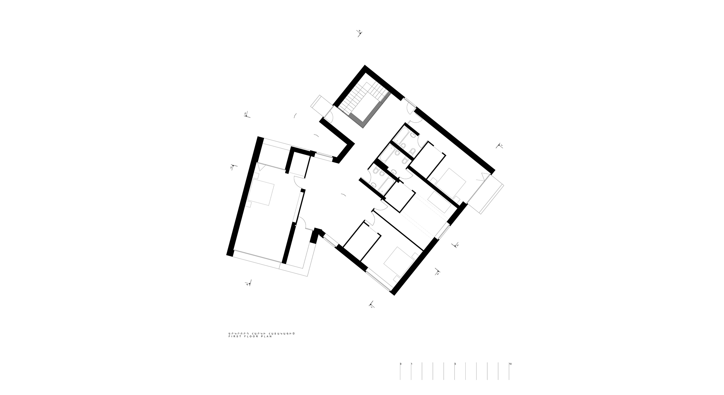 Նախագծը նպատակ ուներ բարդ ուրվագիծ ունեցող հողակտորի վրա տեղադրել առանձնատունը, որով էլ կազմակերպել միջավայրը շեշտելով գլխավոր ուղղությունները մուտքից դեպի տան մուտքը և դեպի հողամասի խորքը ՝ ամառային խոհանոց։
