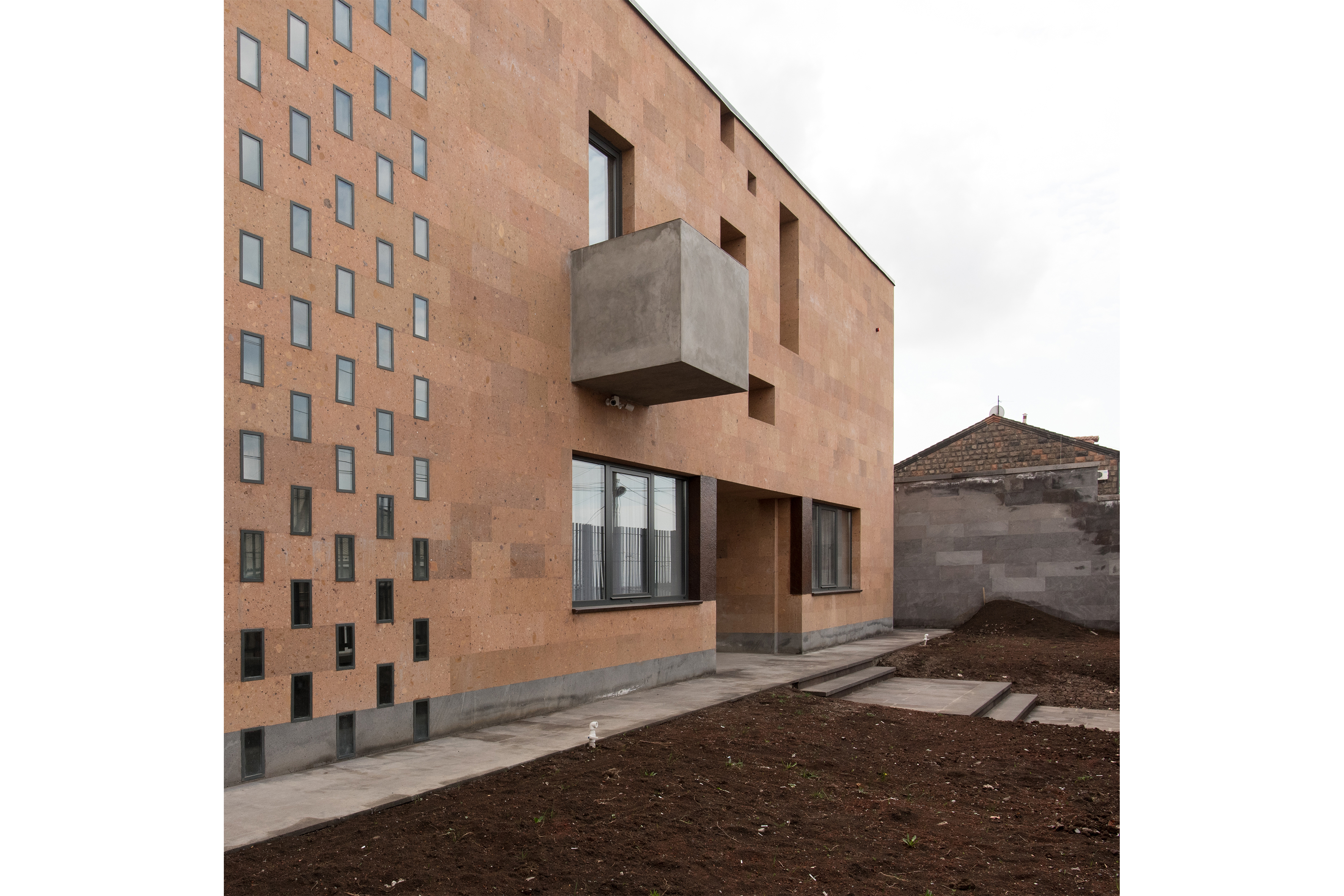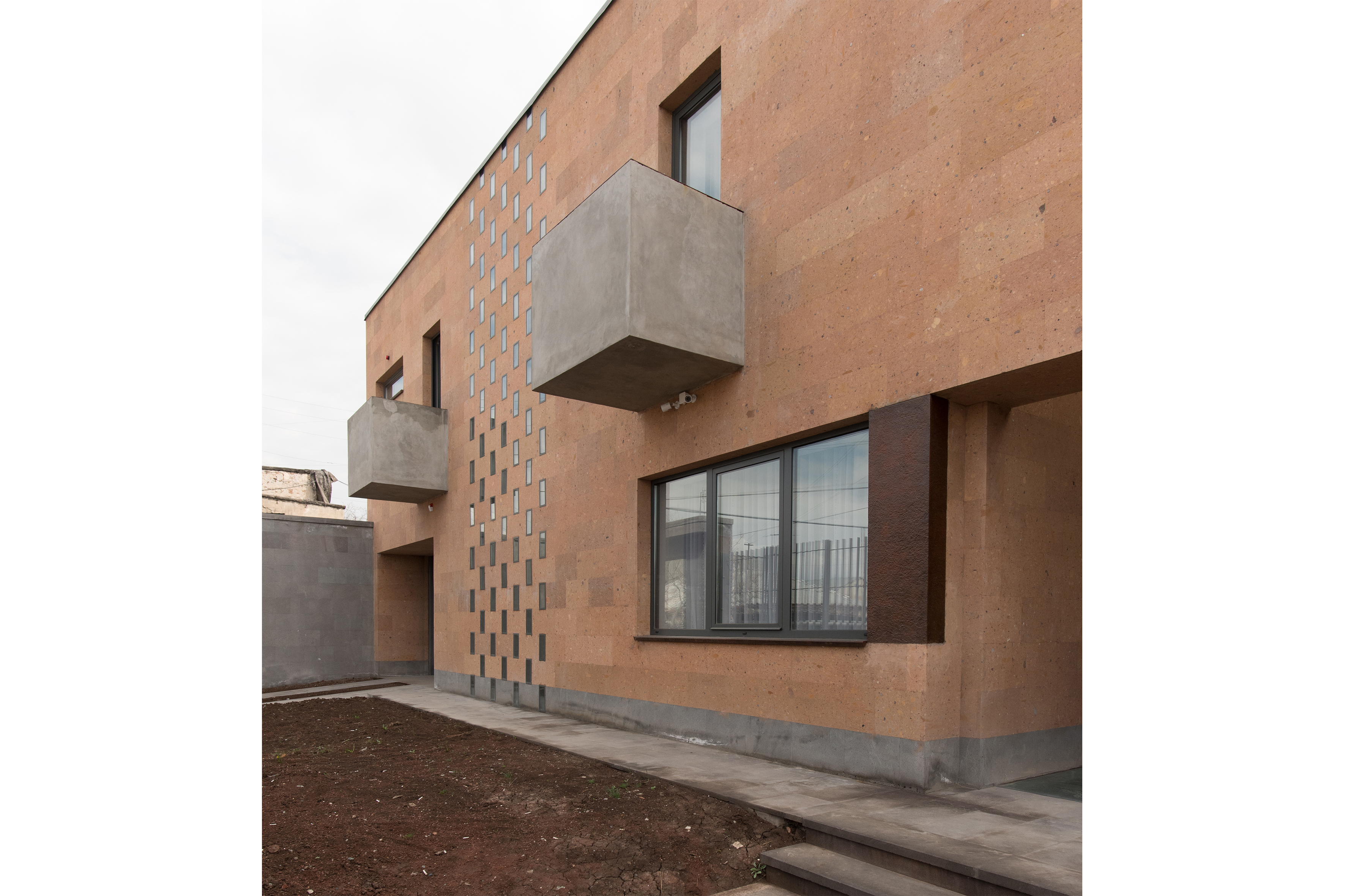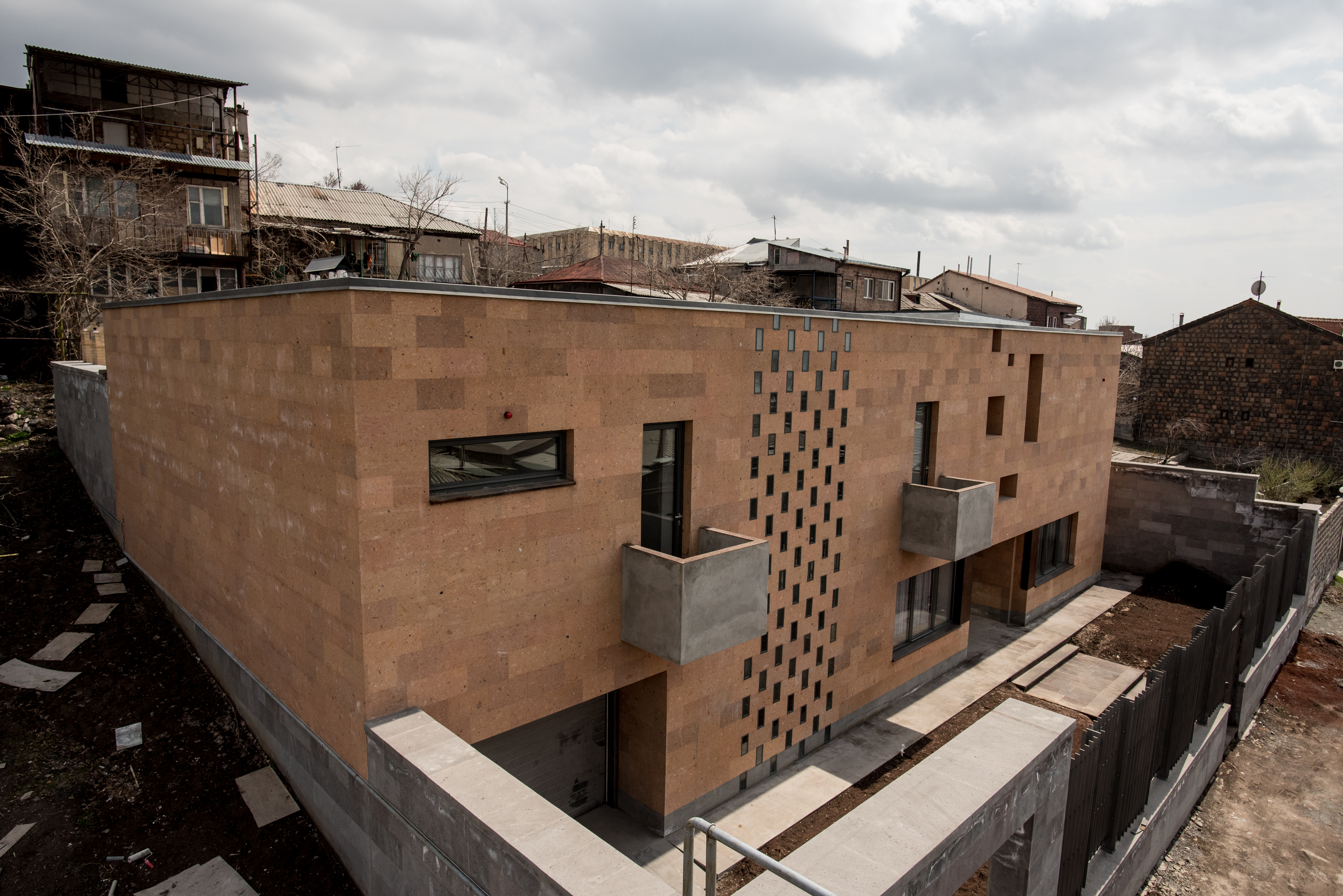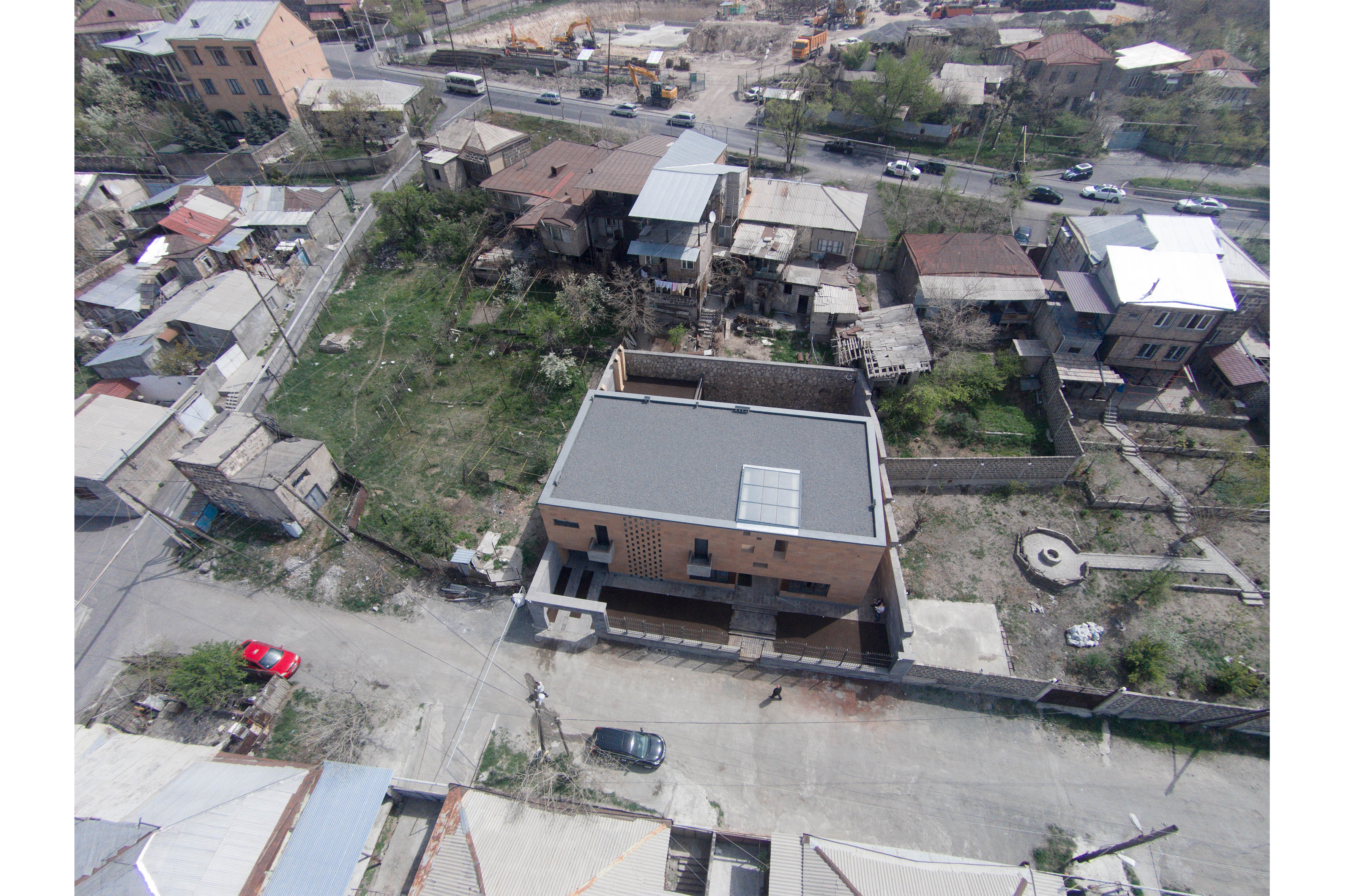 Հակոբյանների ընտանիքին պատկանող առանձնատունը գտնվում է Քանաքեռում՝ քաղաքի հին, տարերայինորեն ձևավորված թաղամասերից մեկում: Խնդիր էր դրված փոքր հողակտորի վրա և սահմանափակ միջոցներով կառուցել առանձնատուն՝ հարմարավետ ու միջավայրին ներդաշնակ: Առանձնատան հորինվածքը պայմանավորված է հողակտորի երթևեկելի հատվածին մոտ դիրքով։ Տունն ուղղանկյուն է, և ծավալի ներսում կազմակերպված է ներքին բակ, որը բաժանում է փողոցը տան գլխավոր մուտքից: Ներքին բակը լուսավորվում է վերևից և ճակատային մասում գտնվող անկանոն բացվածքների շնորհիվ: Դեպի բակ են նայում վերևից՝ երկրորդ հարկի նախասրահն ու գլխավոր ննջարանի մի մասը, իսկ ներքևից ՝ ապակեպատ բացվածքով է լուսավորվում նկուղը: Հորինվածքով իրար են կապված իրար մեջ բացվող փողոցը, ներքին բակը, ապա ապակեպատ լայն բացվածքով նախասրահն ու տան ետնամասում գտնվող բակը: Տան խոհանոցն ունի առանձնահատուկ դեր, սա ոչ միայն այն տեղն է, որտեղ պատրաստում են և ուտում, սա ընտանիքի անդամների և ընկերների հիմնական հավաքատեղին է: Խոհանոցը բացվում է և ՛դեպի տան ետնամասում գտնվող բակ, և ՛նախասրահով դեպի հյուրասենյակ: Երկրորդ հարկում գտնվող ննջասենյակներից դեպի այստեղ են տանում աստիճանները: Առանձնատունը կառուցված է տեղական շինանյութով, երեսապատված Անիի սրբատաշ տուֆի սալերով: