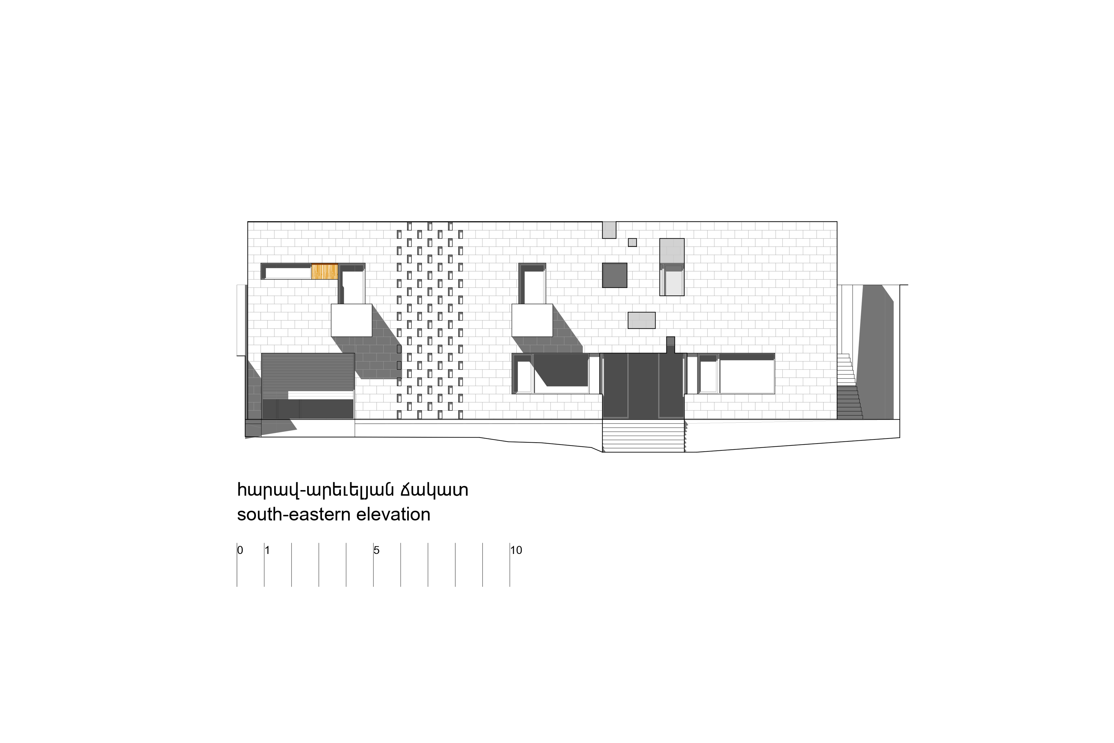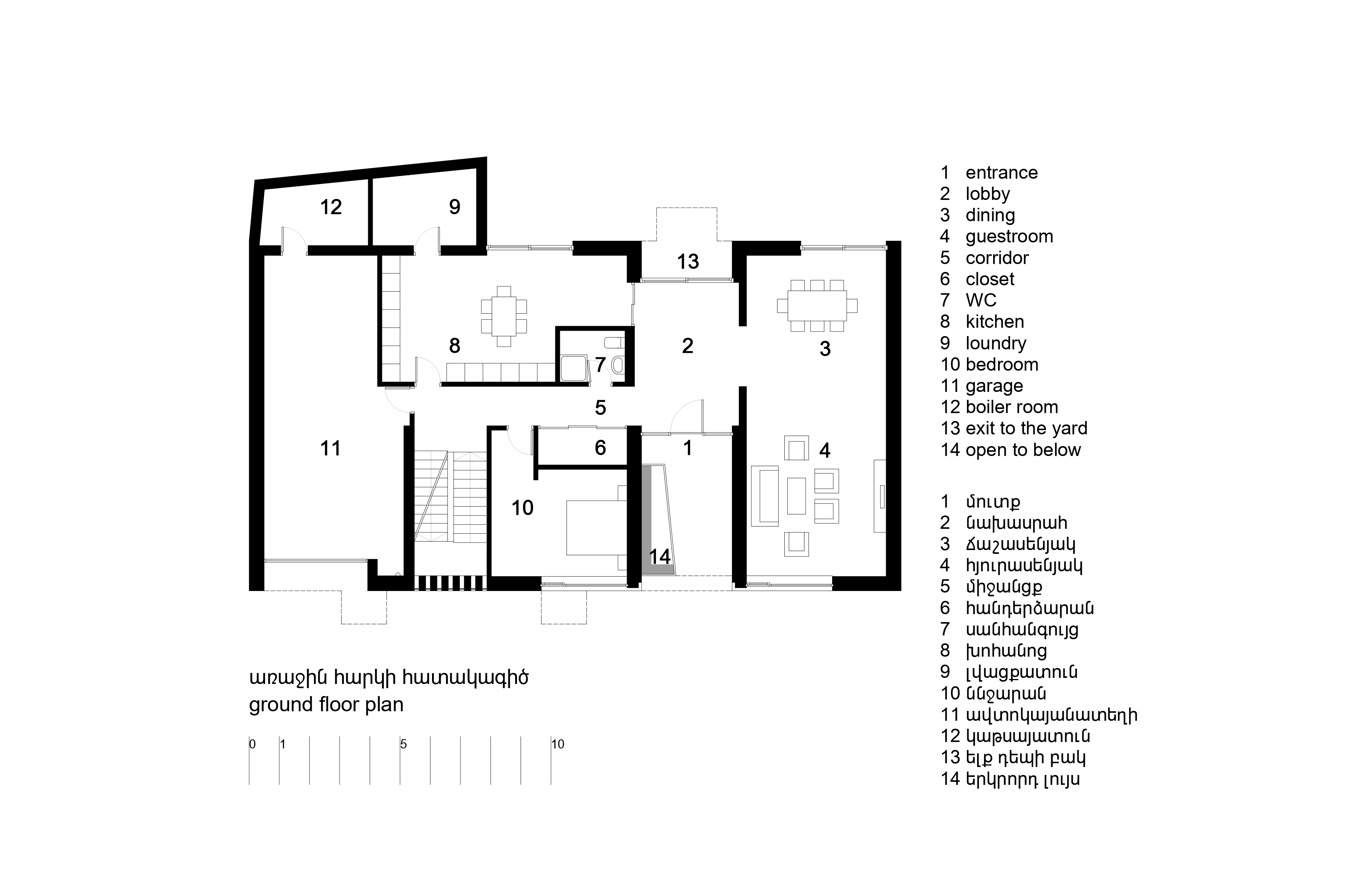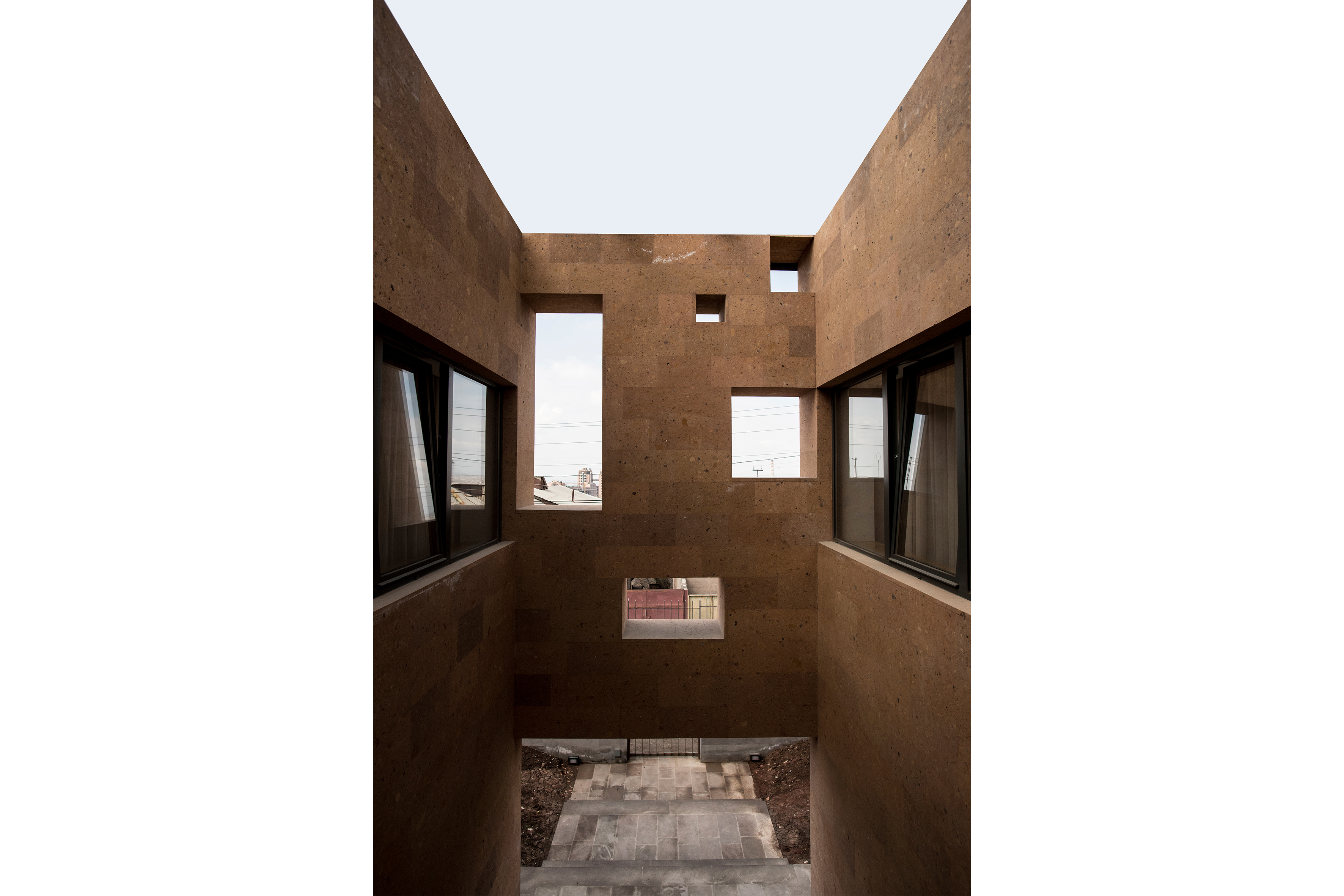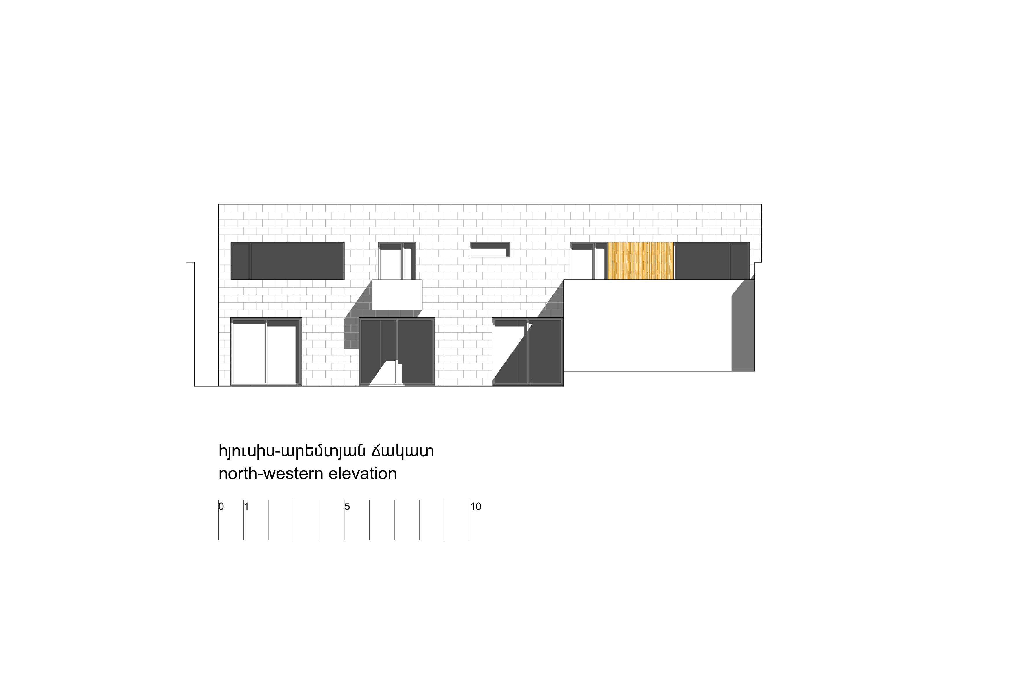 Հակոբյանների ընտանիքին պատկանող առանձնատունը գտնվում է Քանաքեռում՝ քաղաքի հին, տարերայինորեն ձևավորված թաղամասերից մեկում: Խնդիր էր դրված փոքր հողակտորի վրա և սահմանափակ միջոցներով կառուցել առանձնատուն՝ հարմարավետ ու միջավայրին ներդաշնակ: Առանձնատան հորինվածքը պայմանավորված է հողակտորի երթևեկելի հատվածին մոտ դիրքով։ Տունն ուղղանկյուն է, և ծավալի ներսում կազմակերպված է ներքին բակ, որը բաժանում է փողոցը տան գլխավոր մուտքից: Ներքին բակը լուսավորվում է վերևից և ճակատային մասում գտնվող անկանոն բացվածքների շնորհիվ: Դեպի բակ են նայում վերևից՝ երկրորդ հարկի նախասրահն ու գլխավոր ննջարանի մի մասը, իսկ ներքևից ՝ ապակեպատ բացվածքով է լուսավորվում նկուղը: Հորինվածքով իրար են կապված իրար մեջ բացվող փողոցը, ներքին բակը, ապա ապակեպատ լայն բացվածքով նախասրահն ու տան ետնամասում գտնվող բակը: Տան խոհանոցն ունի առանձնահատուկ դեր, սա ոչ միայն այն տեղն է, որտեղ պատրաստում են և ուտում, սա ընտանիքի անդամների և ընկերների հիմնական հավաքատեղին է: Խոհանոցը բացվում է և ՛դեպի տան ետնամասում գտնվող բակ, և ՛նախասրահով դեպի հյուրասենյակ: Երկրորդ հարկում գտնվող ննջասենյակներից դեպի այստեղ են տանում աստիճանները: Առանձնատունը կառուցված է տեղական շինանյութով, երեսապատված Անիի սրբատաշ տուֆի սալերով: