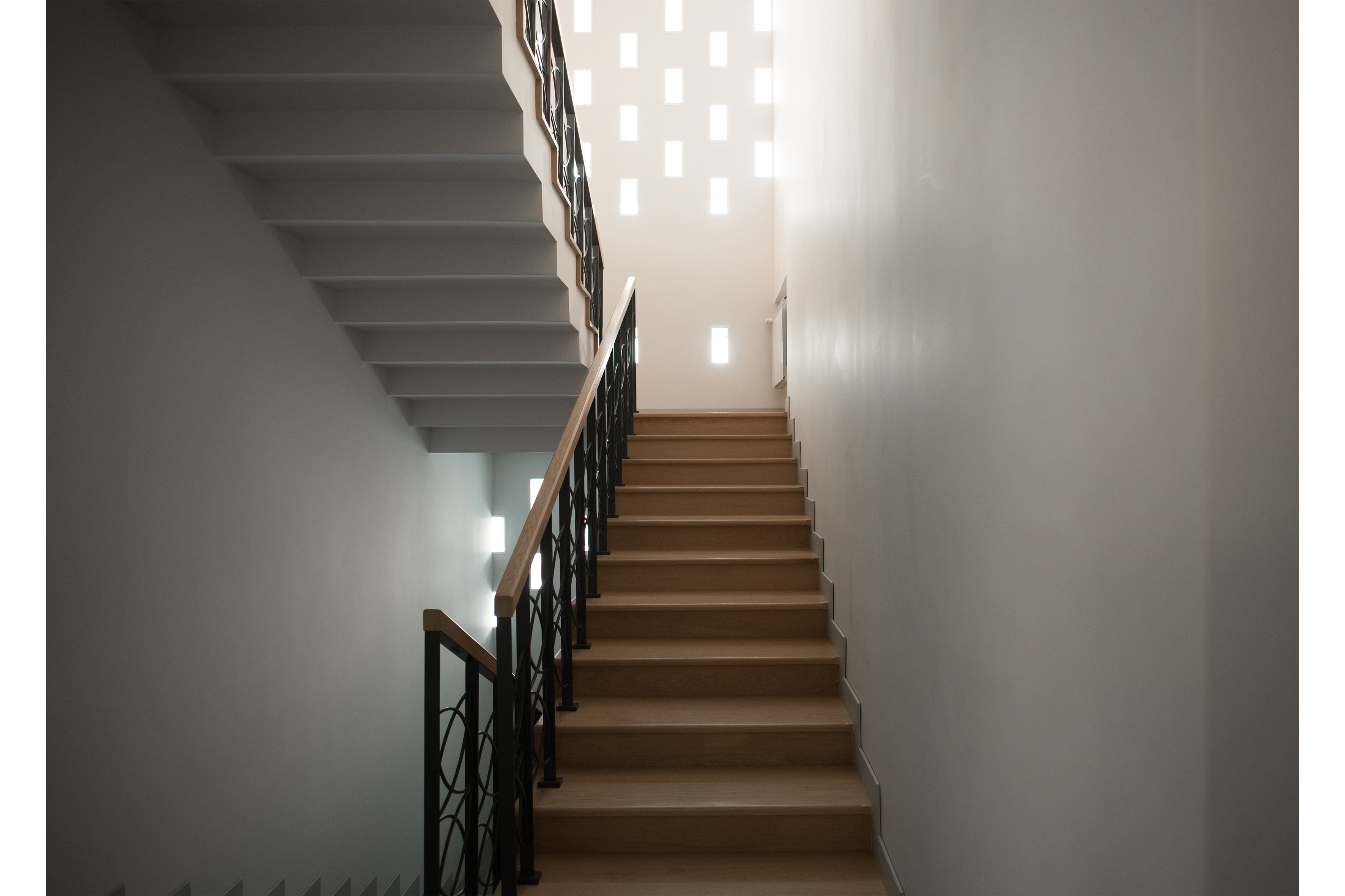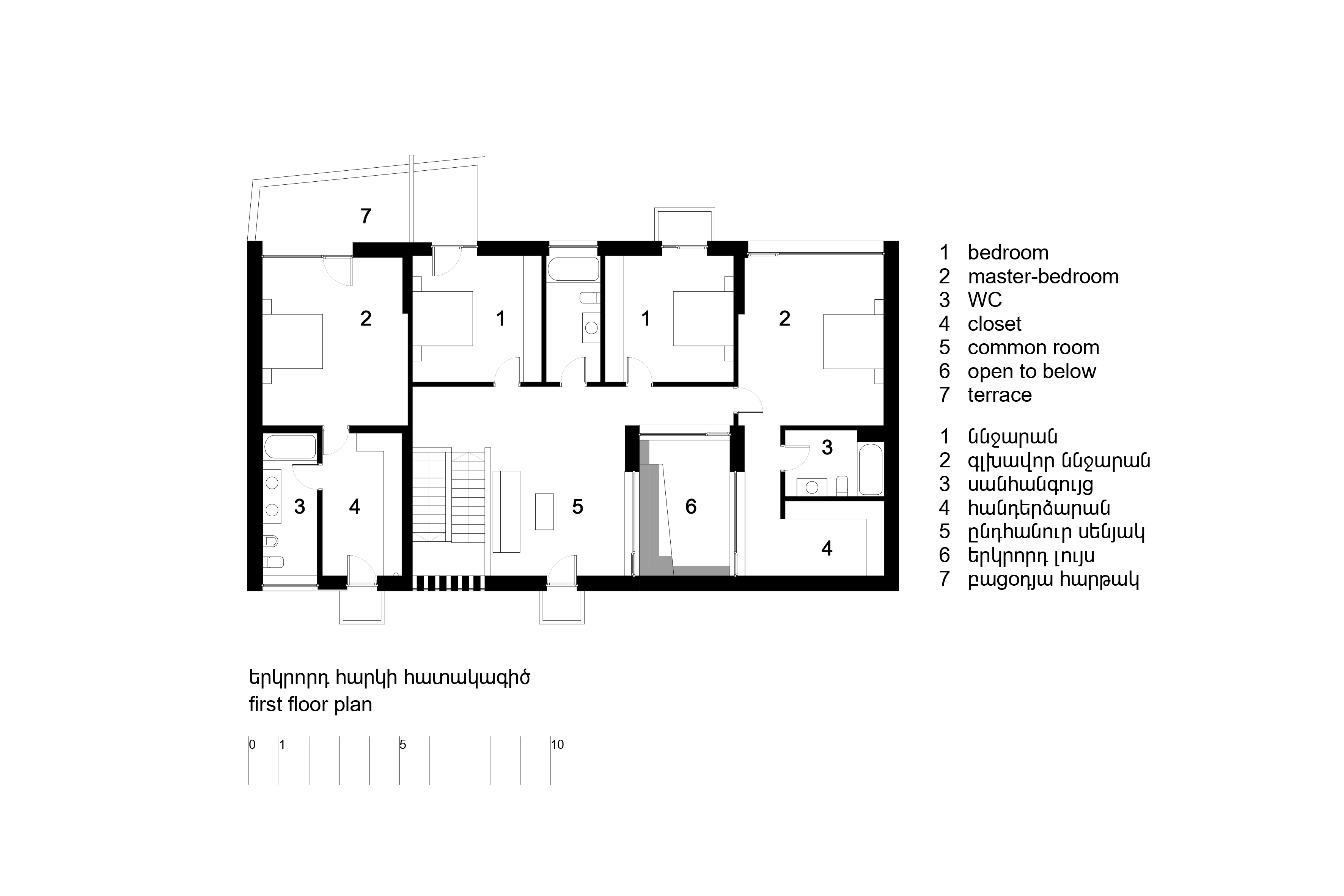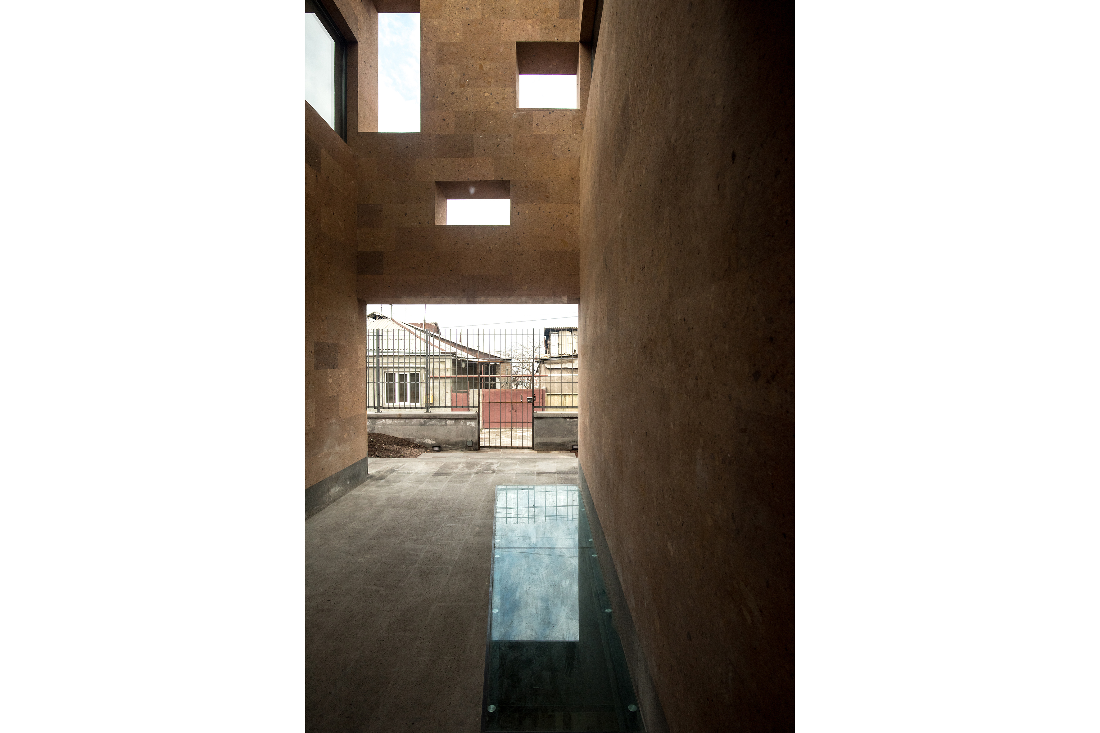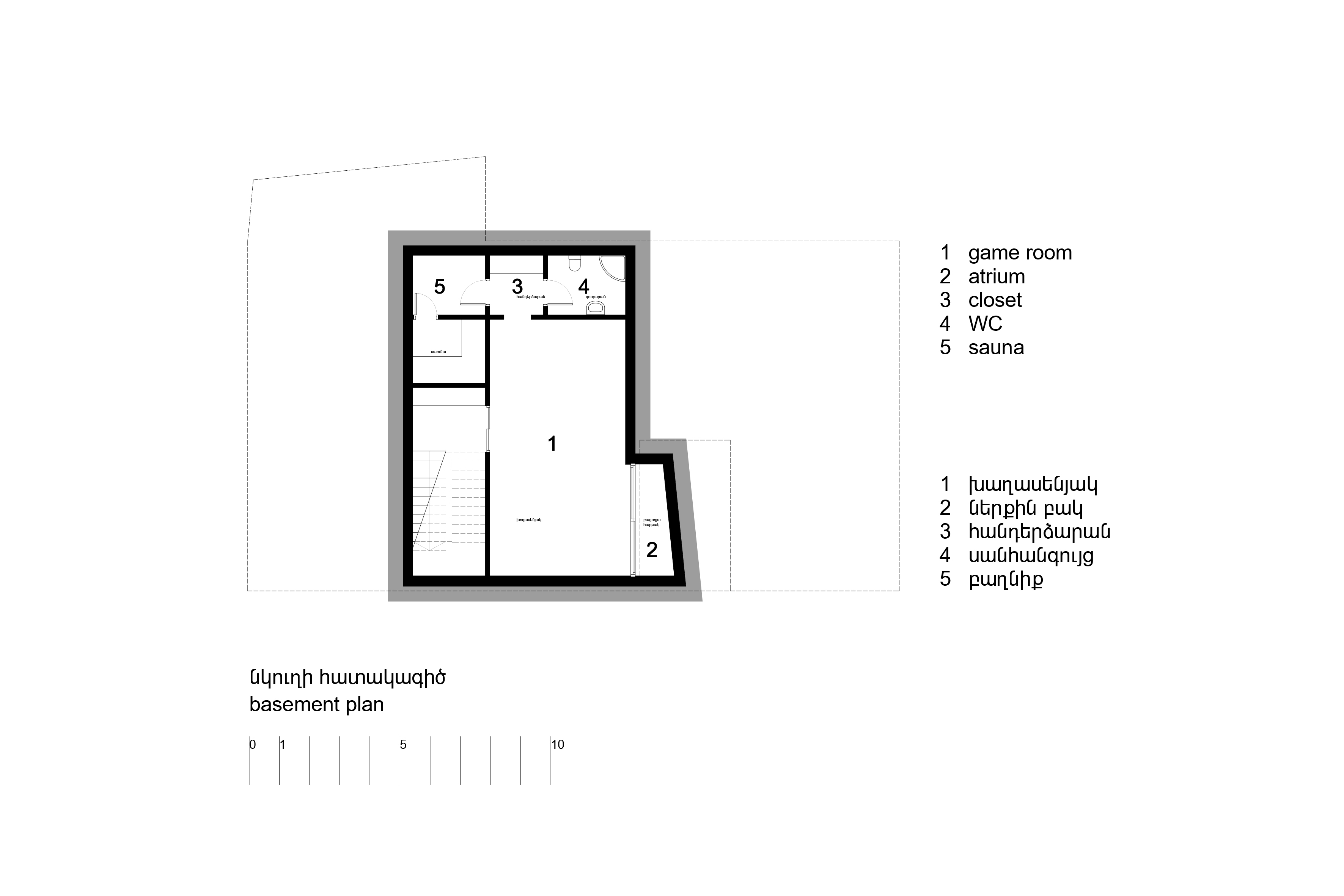 Հակոբյանների ընտանիքին պատկանող առանձնատունը գտնվում է Քանաքեռում՝ քաղաքի հին, տարերայինորեն ձևավորված թաղամասերից մեկում: Խնդիր էր դրված փոքր հողակտորի վրա և սահմանափակ միջոցներով կառուցել առանձնատուն՝ հարմարավետ ու միջավայրին ներդաշնակ: Առանձնատան հորինվածքը պայմանավորված է հողակտորի երթևեկելի հատվածին մոտ դիրքով։ Տունն ուղղանկյուն է, և ծավալի ներսում կազմակերպված է ներքին բակ, որը բաժանում է փողոցը տան գլխավոր մուտքից: Ներքին բակը լուսավորվում է վերևից և ճակատային մասում գտնվող անկանոն բացվածքների շնորհիվ: Դեպի բակ են նայում վերևից՝ երկրորդ հարկի նախասրահն ու գլխավոր ննջարանի մի մասը, իսկ ներքևից ՝ ապակեպատ բացվածքով է լուսավորվում նկուղը: Հորինվածքով իրար են կապված իրար մեջ բացվող փողոցը, ներքին բակը, ապա ապակեպատ լայն բացվածքով նախասրահն ու տան ետնամասում գտնվող բակը: Տան խոհանոցն ունի առանձնահատուկ դեր, սա ոչ միայն այն տեղն է, որտեղ պատրաստում են և ուտում, սա ընտանիքի անդամների և ընկերների հիմնական հավաքատեղին է: Խոհանոցը բացվում է և ՛դեպի տան ետնամասում գտնվող բակ, և ՛նախասրահով դեպի հյուրասենյակ: Երկրորդ հարկում գտնվող ննջասենյակներից դեպի այստեղ են տանում աստիճանները: Առանձնատունը կառուցված է տեղական շինանյութով, երեսապատված Անիի սրբատաշ տուֆի սալերով: